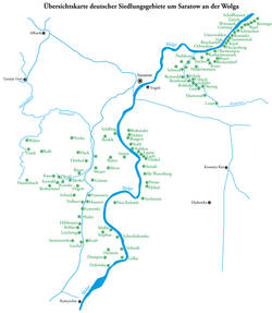 Im Jahr 1765 setzte ein erster Strom der deutschen Kolonisten nach Russland an das Schwarze Meer ein. Im Laufe des Jahres 1766 schwoll dieser Auswanderungsstrom stark an, aber die russische Regierung gab ihr Ziel einer planmäßigen wirtschaftlichen Erschließung der Gebiete an der unteren Wolga und ihrer Verteidigung gegen Nomadenstämme durch „Grenzkrieger“ auf, da ersteres einer wesentlich größeren Einwanderung bedurfte und zweites durch die geostrategischen Ereignisse hinfällig wurde. Die Ansiedlung der Migranten an die Peripherie des Zarenreiches geschah dann nach Österreichischem Vorbild, geplant als natürliche Militärgrenze mit Schutz gegen fremde Steppenvölker. Das besondere Ziel der Berufung von ausländischen Bauern nach Südrussland war, dass sie den einheimischen Russen als Lehrer dienen und speziell fortschrittliche Methoden der Landwirtschaft vermitteln sollten. Mit dem Siebenjährigen Krieg gab es einen weiteren Anlass für etliche Menschen dem Anwerben Katharinas zu folgen: bis zum Jahre 1774 zogen 30.623 Personen mehrheitlich nach Saratov, einige ließen sich bei St. Petersburg bzw. in Livland und der Ukraine nieder. Der größte Teil dieser Auswanderer stammte aus Hessen und den pfälzischen Gebieten.[Anm. 4]