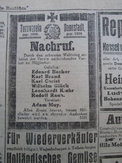 - Vgl. Thalmann, Heinrich, Die Pfalz im Ersten Weltkrieg. Der ehemalige bayerische Regierungskreis bis zu seiner Besetzung Anfang Dezember 1918 (Beiträge zur pfälzischen Geschichte Bd.2), Kaiserslautern 1990, S. 295ff. Zurück