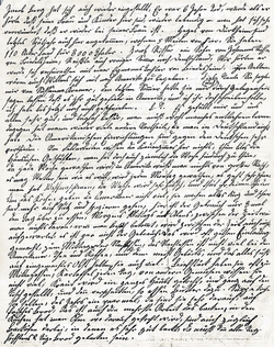 Jacob Berg hat sich auch wieder eingestellt. Er war 6 Jahre Tod, wurde als er hörte daß seine Frau und Kinder hier sind, wieder lebendig - man hat sich sehr verwundert daß er wieder bei seiner Frau ist. Heges von Dürkheim sind letztes Spätjahr auch hier angekommen, wohnen 5 Meilen von hier. Sie haben 110 Acker Land für 3000 Thaler. Jacob Risser, ein Sohn von Johannes Risser von Friedelsheim, Reißte auch vorigen Sommer nach Deutschland, Wir hörten er werde sich verheirathen mit einer Eymanns Tochter von Biedesheim, ihre Aeltern wären auch Willens sich mit nach Amerika zu begeben. Liebe Tante Sie sagten mir von Sussanna Kremer, den letzten Sommer hatte sie mir auch durch Gelegenheit sagen lassen daß es ihr gut gefiele in Amerika, und ich ihr doch schreiben solle, ich habe bis jetzt noch nicht geschrieben. L.T. Es gefällt mir und uns allen sehr gut, und täglich besser, man muß wohl manches entbehren lernen, dagegen hat mann wieder viele andere Vortheile, die man in Deutschland nicht hat. Die Amerikanischen Einrichtungen sind gegen den Deutschen sehr verschieden. Von Feldarbeiten wissen die Frauenzimmer hier nichts, thun blos die häuslichen Geschäften, man hat doch auch ziemlich die Woche hindurch zu thun, da jede Woche gewaschen wird; in Amerika weiß man nichts von großer Wasch, es mag Wetter sein wie es will, wird jeden Montag gewaschen, es geht sehr schnell, man hat Waschmaschienen, die Wasche wird sehr hübsch, und thut ihr keinen Schaden. Um das Kochen geben die Amerikaner nicht viel, sie machen alles kurz und schnell, sind mehr auf Putz und spazieren gehen, hier ist der Gebrauch nur 3 mal den Tag über zu essen, Morgens Mittags und Abens, zwischen der Zeit weis man nichts davon, wenn man Besuch bekommt, wird zwischen der Zeit auch nichts aufgewartet, es ist gar nicht der Gebrauch. Das wird oft gethan Einladungen gemacht, zum Mittag- oder Nachtessen, das Nachtessen ist nicht viel bei den Amerikaner. Thee und Kaffee, und dann meist Gebäcks, und das alles süß, auf eingemachtes Obst halten sie auch viel. Biefstück haben sie oft zum Mittagessen, Kartoffel jeden Tag, von andern Gemüsen wissen sie nicht viel; Kraut wird ein ganzes Häubt gekocht, und ganz auf den Tisch gestellt, und denn verschnitten, so essen Butter dazu. Suppe kochen sie selten, des Jahrs ein paar mal, da sind sie sehr darauf, auf frisches Brod, das ist auch die mehrste Arbeit das backen, in den Küchen hat man Öfen wo darauf gekocht wird, sind auch zugleich Backöfen darbei, in denen es sehr gut backt, da muß denn alle Tag höchstens 2 Täge Brod gebacken sein.