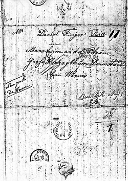Johannes Finger (* 06.07.1796 in Wachenheim, † nach 1847 in USA) war mennonitischer Auswanderer, der 1817 in Philadelphia ankam. Er war Müller, Bauer und Gutsbesitzer und ließ sich zuletzt in Easton, Pennsylvania nieder. 1821 heiratete er Chataria (Chatarina) Schumann (* um 1802 in Pennsylvania, † nach 1847 in USA), das Ehepaar hatte insgesamt 3 Söhne und 4 Töchter (alle zwischen 1821 und 1837 geboren). Johannes Finger schreibt an seinen Bruder Daniel Finger (* 25./26.06.1800 in Wachenheim, † 12.05.1866 in Monsheim), der mit Anna Marie Möllinger, verw. Krebül (* 20.10./11.1783 in Monsheim, † 03.10.1871 ebd.) verheiratet war. Daniel Finger, wie sein Bruder ein Mennonit, war Müller in der Oberen Schlossmühle und Gutsbesitzer in Monsheim.