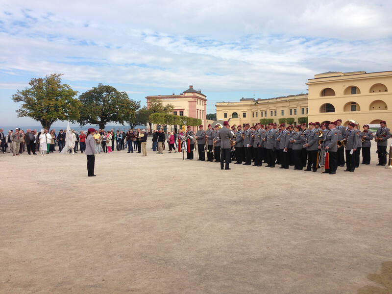 Das Heeresmusikkorps spielte abschließend die Nationalhymnen von Luxemburg, Belgien, Frankreich und Deutschland sowie die Europahymne.