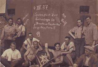 Der Beginn der NS-Zeit ab 1933 bedeutete auch für das Braugewerbe einen zunehmenden staatlichen Einfluss auf den Wirtschaftsprozess: Planvorgaben, Autarkiepolitik, Preisfestsetzungen und bereits der Kriegsvorbereitung dienende Rohstoffkontingentierungen wirkten sich auch auf den Absatzerlös des Frankenthaler Brauhauses aus, der mit zunehmender Rohstoffverteuerung wieder leicht fiel.[Anm. 48] Vor allem aber hatte das neue Regime Einfluss auf die Betriebsorganisation der deutschen Brauwirtschaft und somit auch des Brauhauses: Die deutschen Brauereien waren nunmehr in Zwangsgemeinschaften wie der „Deutschen Arbeitsfront“ (DAF) und dem „Reichsnährstand“ organisiert; der Vorstand des Frankenthaler Brauhauses wurde u. a. mit dem Vorsitzenden Otto Pfeufer neu besetzt, aus der Belegschaft des Unternehmens wurde eine NS-„Betriebsgemeinschaft“.[Anm. 49] „Kameradschaftsabende“, Betriebsausflüge und Freizeitveranstaltungen der DAF-Organisation „Kraft durch Freude“ (KdF) wurden organisiert sowie die Aufenthaltsbereiche für die Arbeiter verschönert.[Anm. 50] So wurden u. a. eine Bibliothek und eine Sportanlage für die Feierabendgestaltung der Arbeiterschaft eingerichtet, einigen Arbeitern Baudarlehen zu Siedlungszwecken gewährt sowie Weihnachtszuwendungen gemacht.[Anm. 51] Zudem fanden größere Umbaumaßnahmen im Betrieb statt und es wurden wieder vermehrt Investitionen in die Anlagenmodernisierung und den Aufbau eines Fuhrparks getätigt, nun aber insbesondere „[z]ur Unterstützung der Arbeitsbeschaffung[spolitik]“ des neuen Regimes.[Anm. 52] Die NS-Betriebspolitik wurde somit durch die Brauhaus-Führung konsequent umgesetzt. Eine wichtige Besitzverhältnisveränderung ergab sich für die Brauerei mit der Abstoßung vieler Aktien durch die Eichbaum-Werger AG 1938 bis auf 100.000 RM.[Anm. 53] Diese hatte bis dahin 940.800 von 960.000 RM des Grundkapitals des Frankenthaler Brauhauses gehalten.[Anm. 54] Somit konnte das Brauhaus wieder nahezu vollständige Selbstständigkeit erlangen, indem dessen Aktien von Frankenthaler Bürgern und „Freunde[n] des Frankenthaler Brauhauses“ zurückerworben wurden.[Anm. 55]
