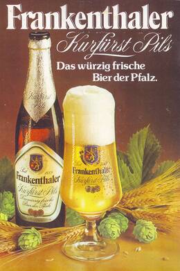 - Vgl. StAFt: Best. XIII/10: Frankenthaler Brauhaus steigerte Bierabsatz, in: Rheinpfalz, 12.06.1980; StAFt: Best. XIII/10: Plus beim Bierausstoß, in: Rheinpfalz, 11.07.1980; StAFt: Best. XIII/10: Neu „Kurfürst-Pils“, in: Rheinpfalz, 03.07.1980; StAFt: Best. XIII/10: Neue Biersorten kamen gut an, in: Rheinpfalz. FTZ, 08.02.1982; StAFt: Best. XIII/10: Freude im Frankenthaler Brauhaus, in: Rheinpfalz, 07.06.1984; vgl. auch das Flyer- und Werbematerial aus: StAFt: Best. X/30/3-3. Siehe dazu auch Fischer/Herborn 1985, S. 111. Im Jahr 1984 wurden einige dieser Biere mit CMA- und DLG-Biersiegeln ausgezeichnet (vgl. ebd.; StAFt: Best. XIII/10: Auszeichnung für Brauhaus, in: Rheinpfalz, 23.07.1984; StAFt: Best. XIII/10: Medaillenregen für Frankenthaler Biere, in: Rheinpfalz, 20.12.1984). Im Jahr 1994/95 machte das Exportbier allerdings immer noch 50 Prozent des Umsatzes aus, das Bier Pilsener Art kam auf knapp 40 Prozent [vgl. StAFt: Best. XIII/10: Pfälzer Brauereien (V). Frankenthaler Brauhaus, in: Rheinpfalz. FTZ, 04.07.1995]. Zurück